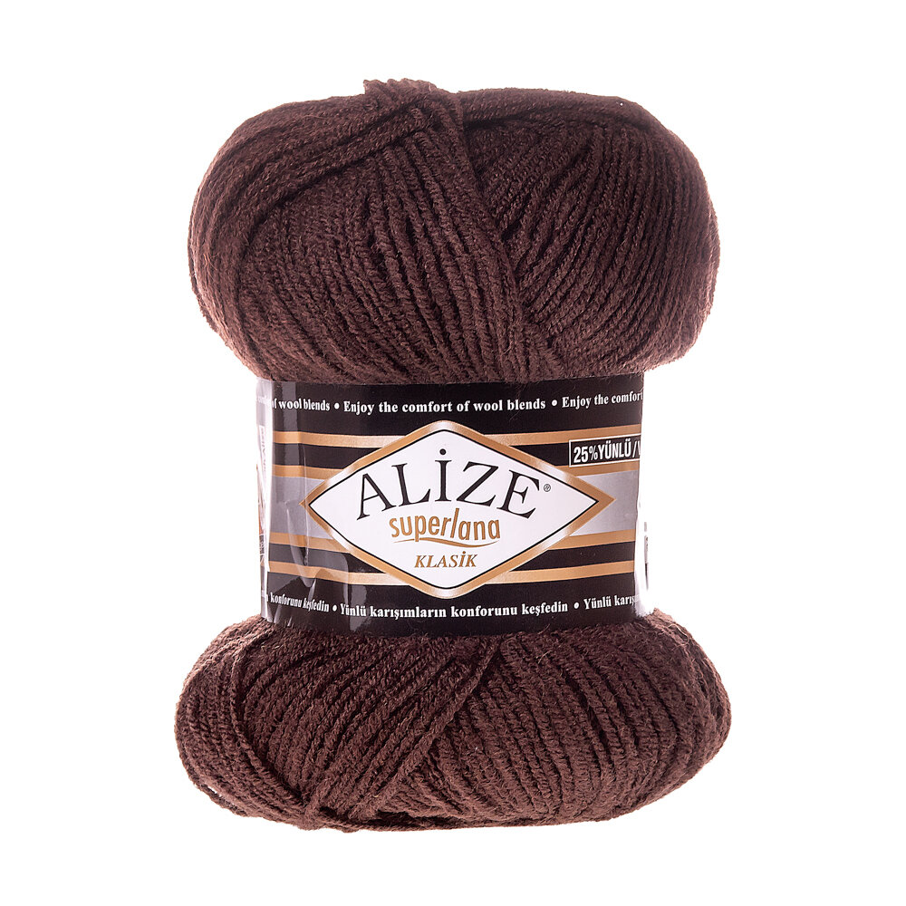 10 цен на Пряжа Alize Superlana klasik (Суперлана Классик) - 3 мотка Цвет: 26 коричневый 25% шерсть, 75% акрил 100г 280м