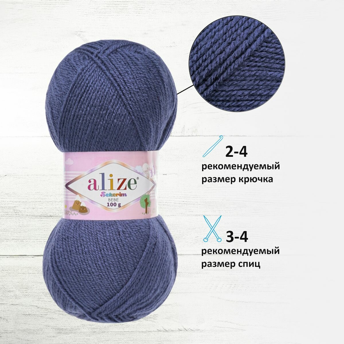 Пряжа Alize Sekerim Bebe Темно-голубой (289) 1 моток 100 г/320 м (100% акрил) ализе шекерим бебе 325 ₽