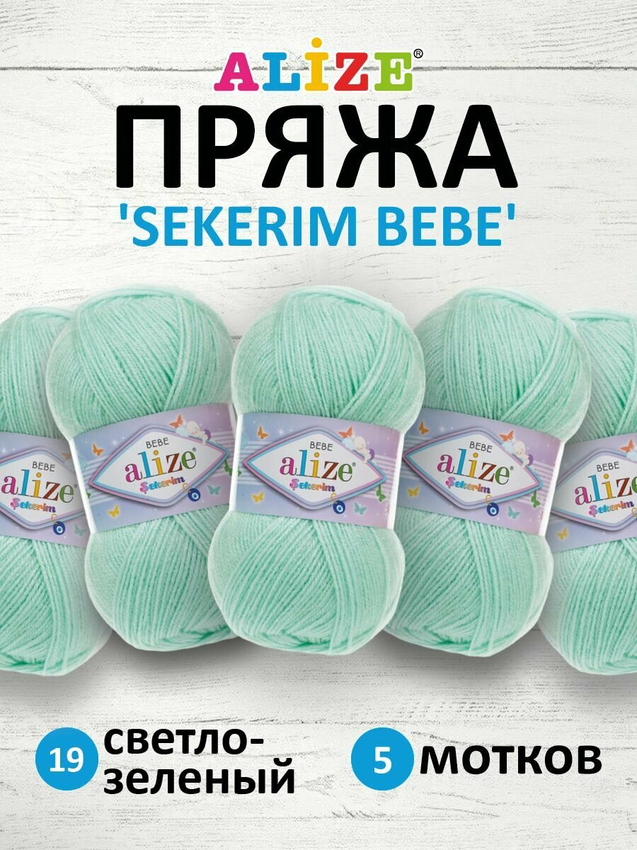 Пряжа для вязания Alize Sekerim Bebe (Шекерим Беби) - 1 моток 19 водяная зелень, детская гипоаллергенная, 100% акрил, 320м/100г