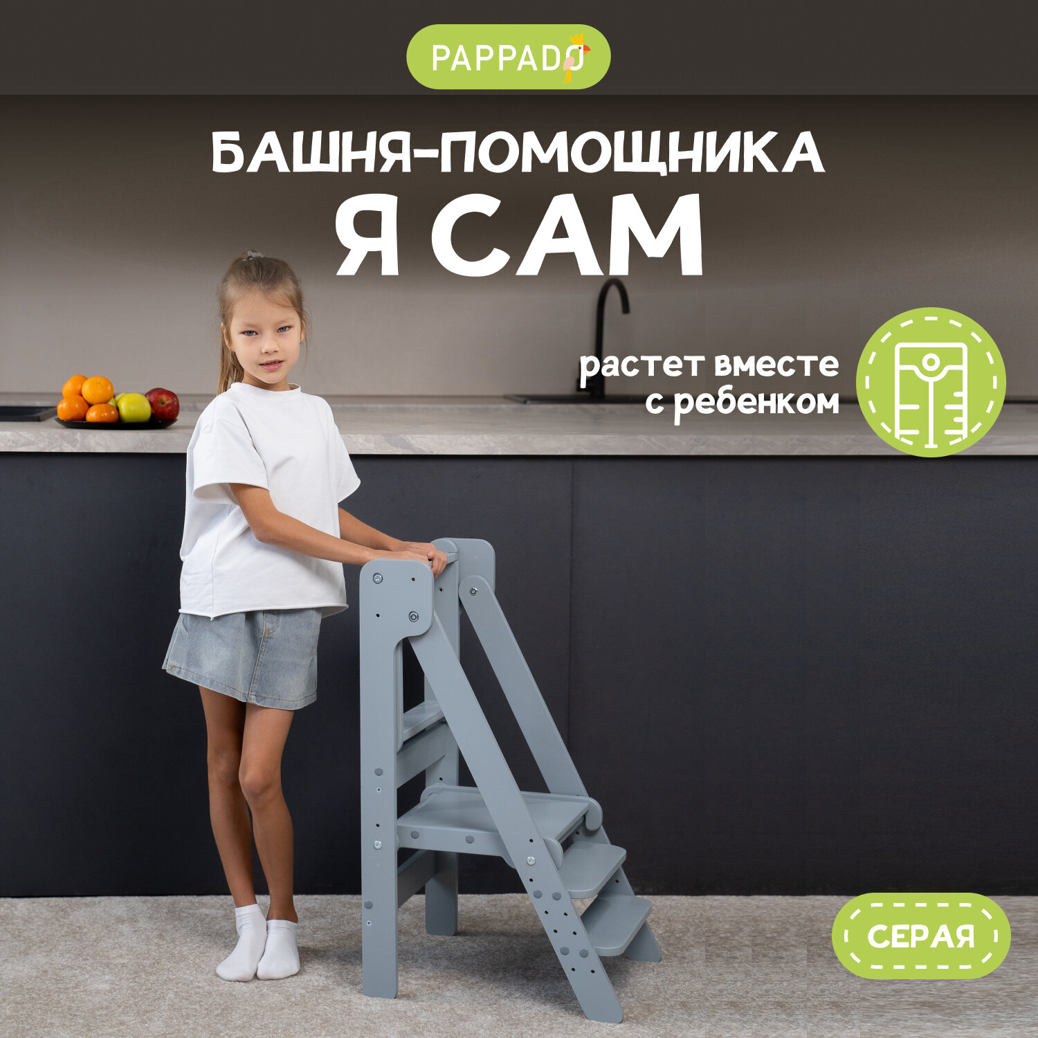 Башня помощника Монтессори "Я сам" серая PAPPADO стульчик для кормления информация: