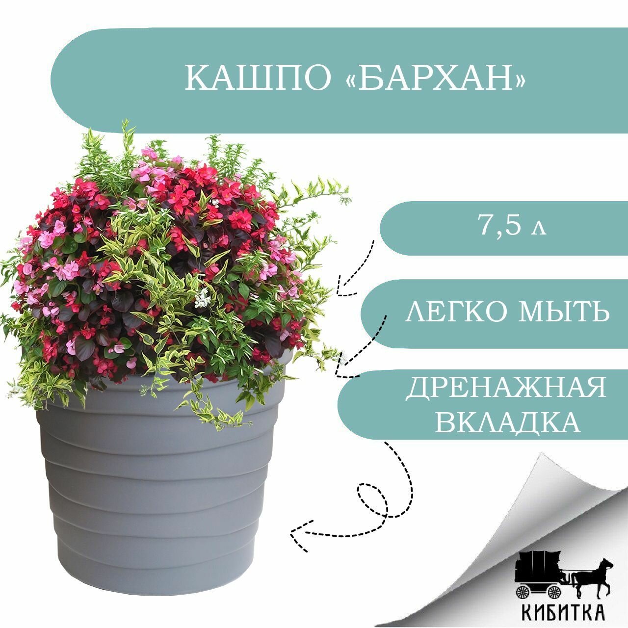 Отзывы на Кашпо пластик, 7.5 л, 26.5х25 см, универсальное, антрацитовое, Бархан, КШ-4363