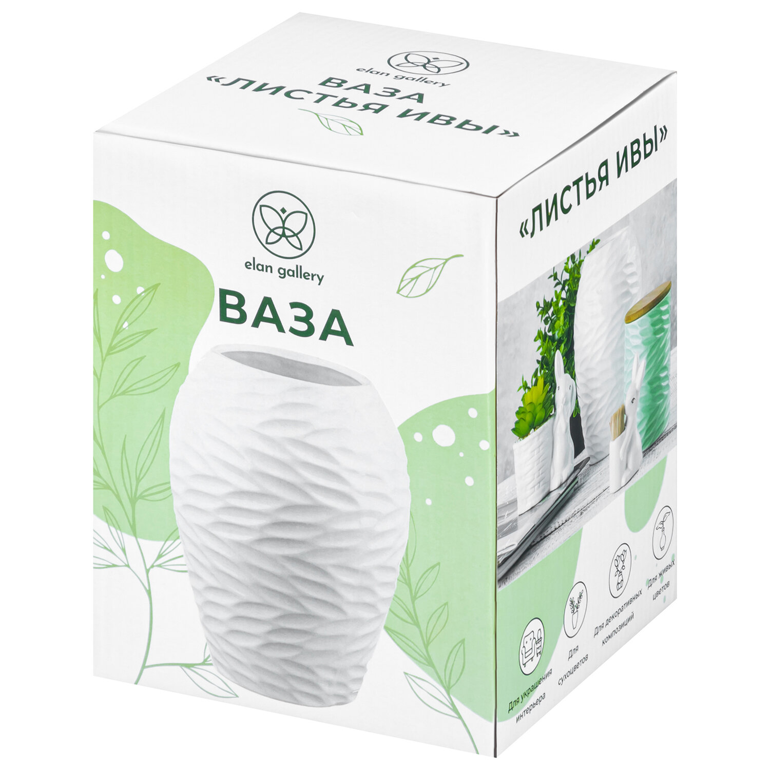 Ваза 15х15х20 см 2,25 л Elan Gallery Листья Ивы пломбир 1 030 ₽