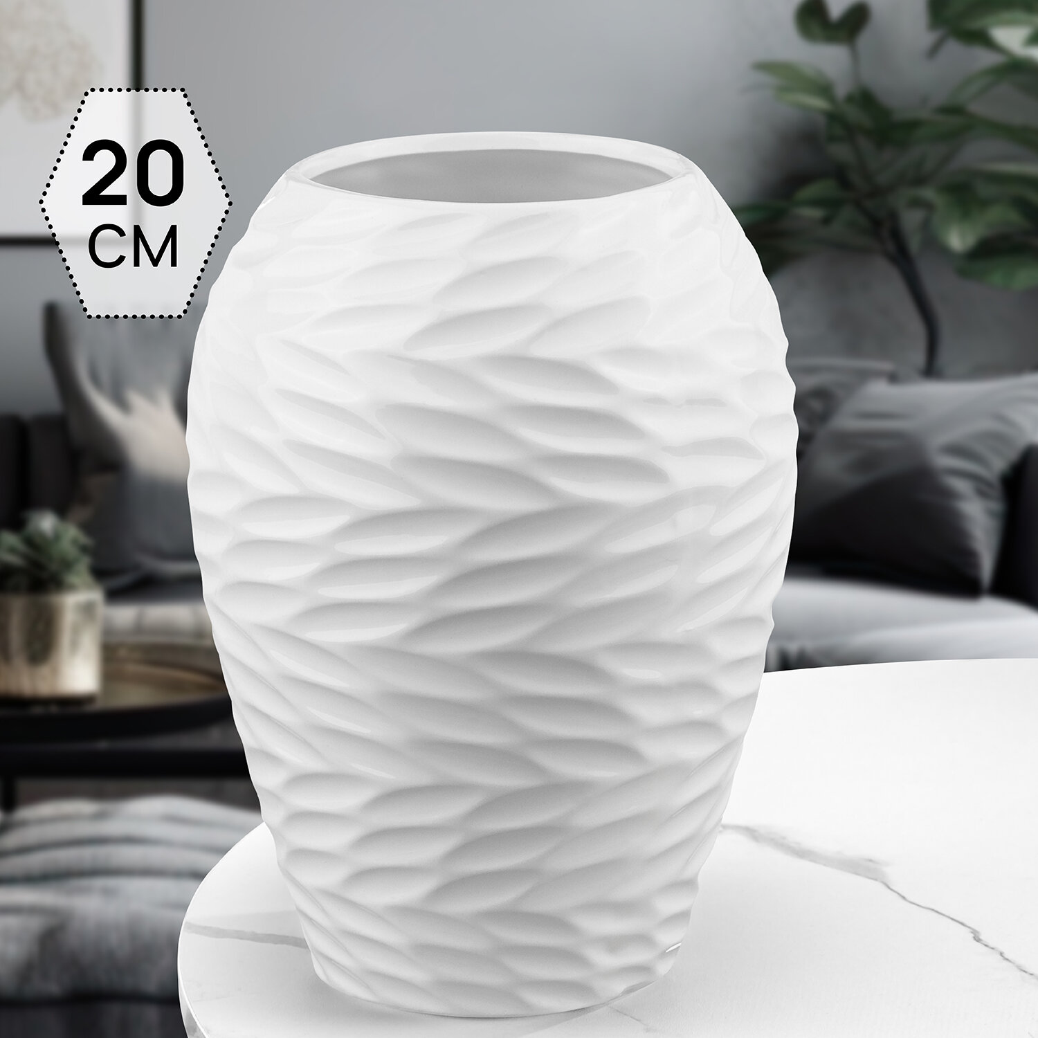 Ваза allmoss "Ахра", белая, из бетона, 11.5*3.5 см, настольная