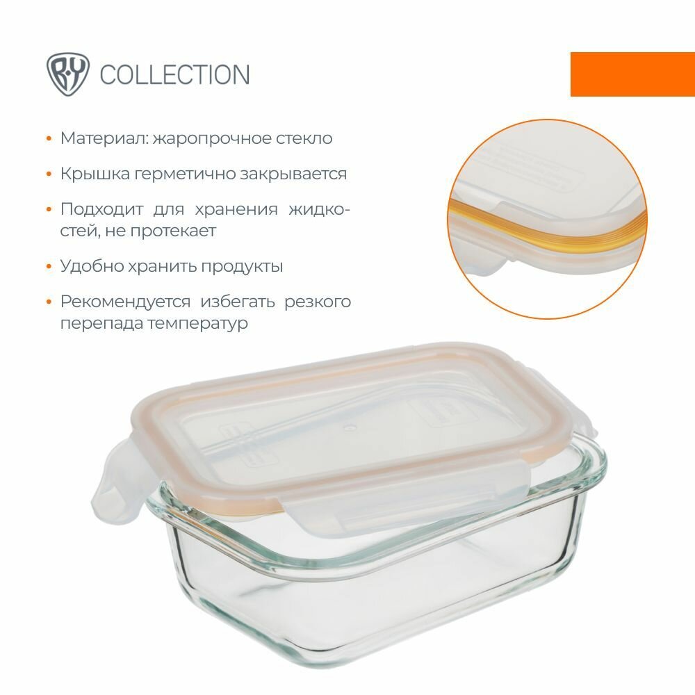 Контейнер герметичный для продуктов 0,37л BY COLLECTION, 15х11,5х5,5см, жаропрочное стекло информация: