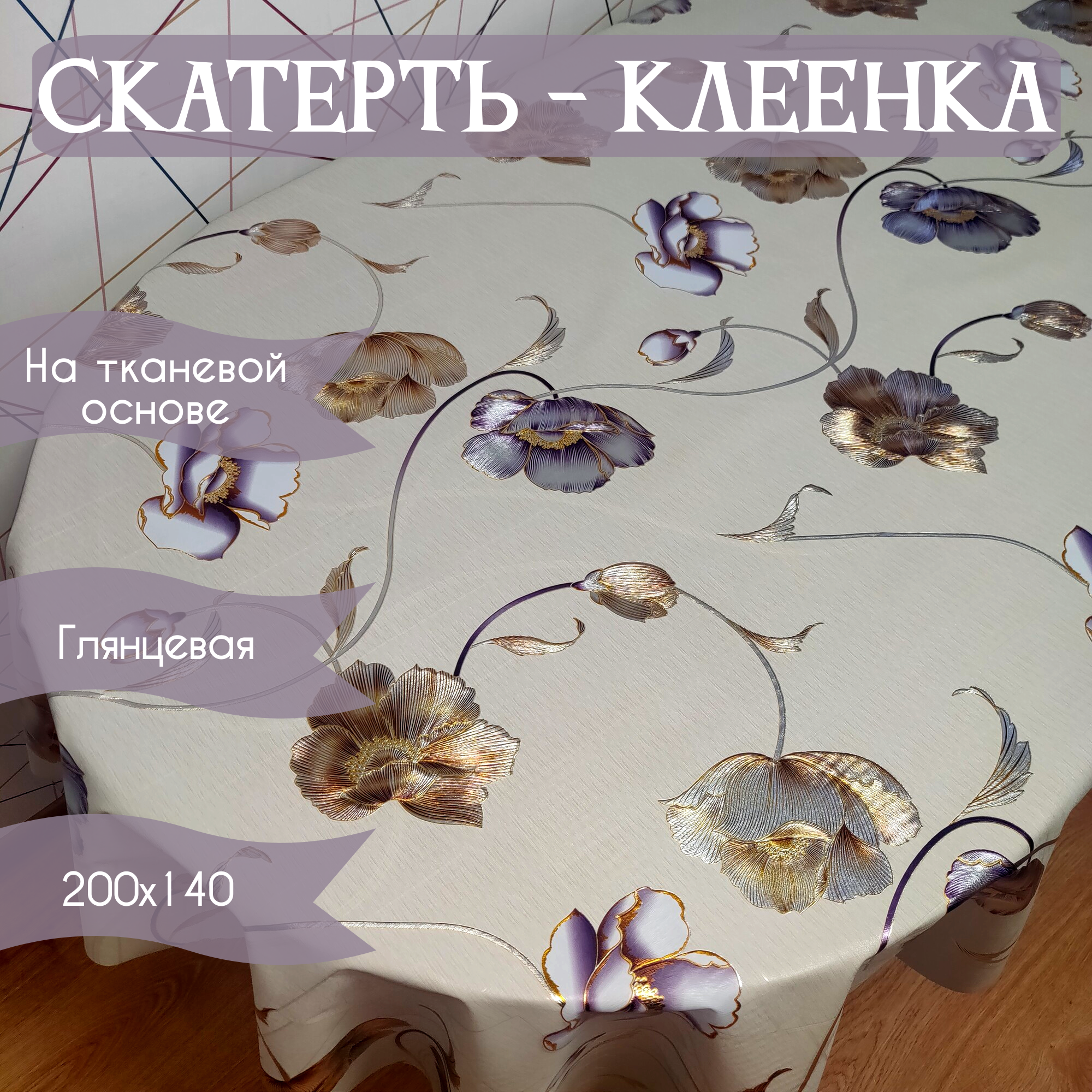 Скатерть-Клеенка на стол ПВХ, на тканевой основе 200x140 см Цветы информация: