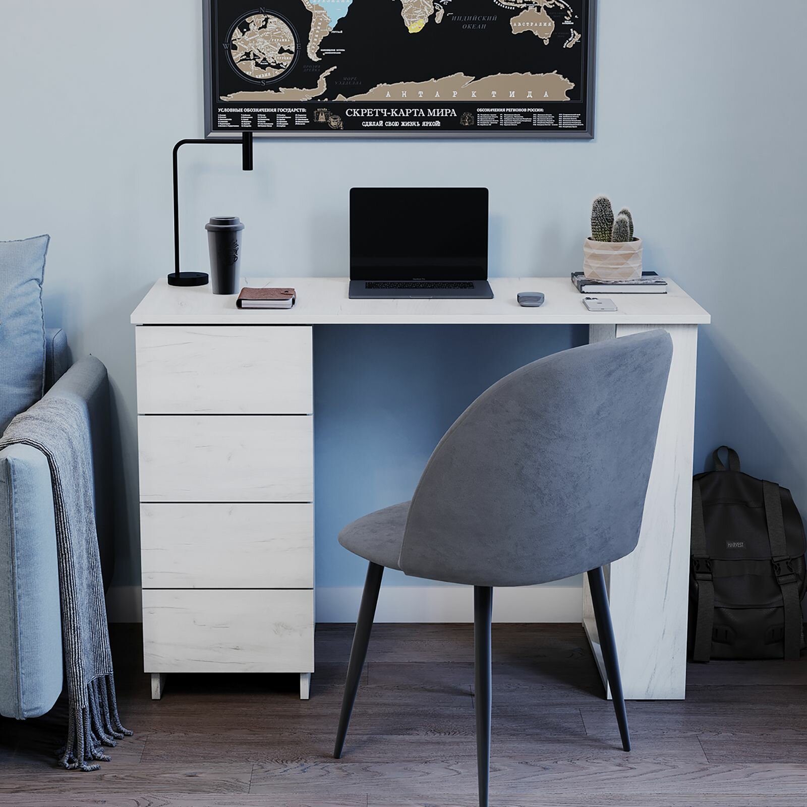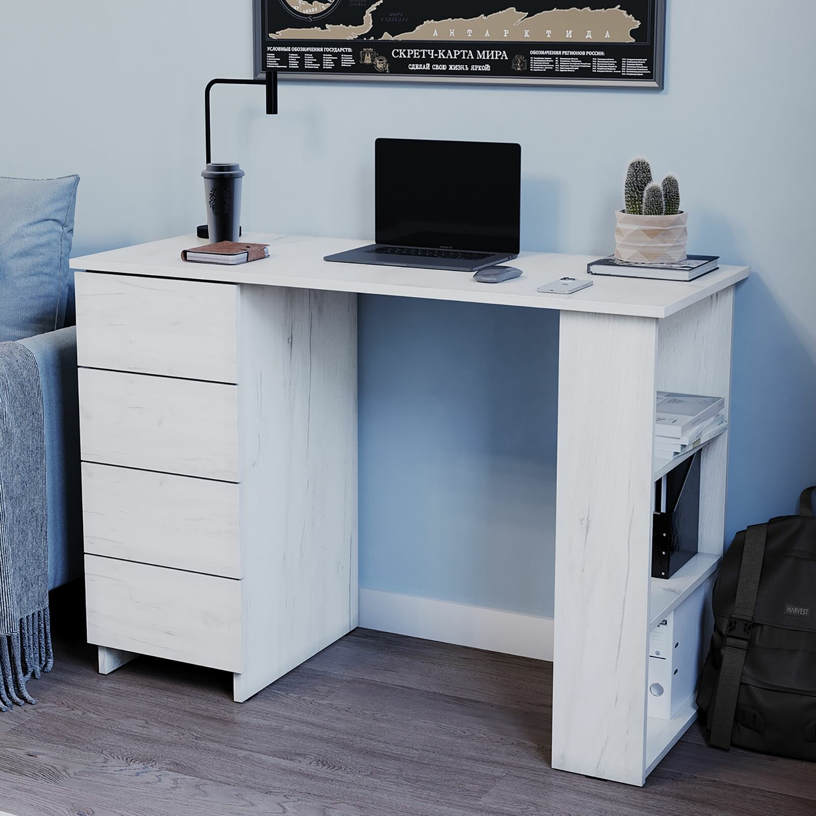 Письменный стол LETTA "Бетон", ЛДСП, 4 ящика, полки, 105,6 см x 45 см x 75 см 5 340 ₽