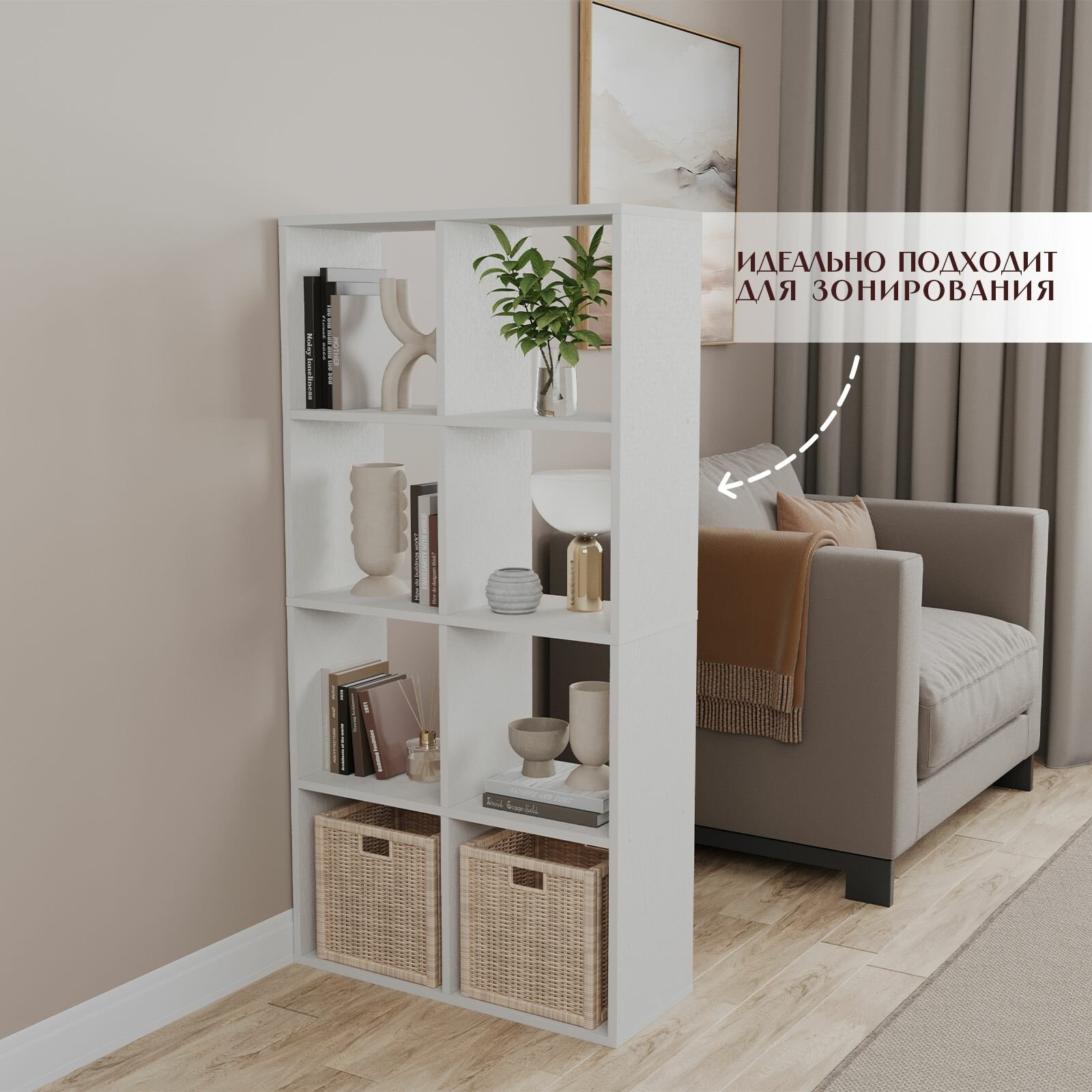 Стеллаж напольный 12 секций SOHO Модерн 142х33х107 см, перегородка, белый