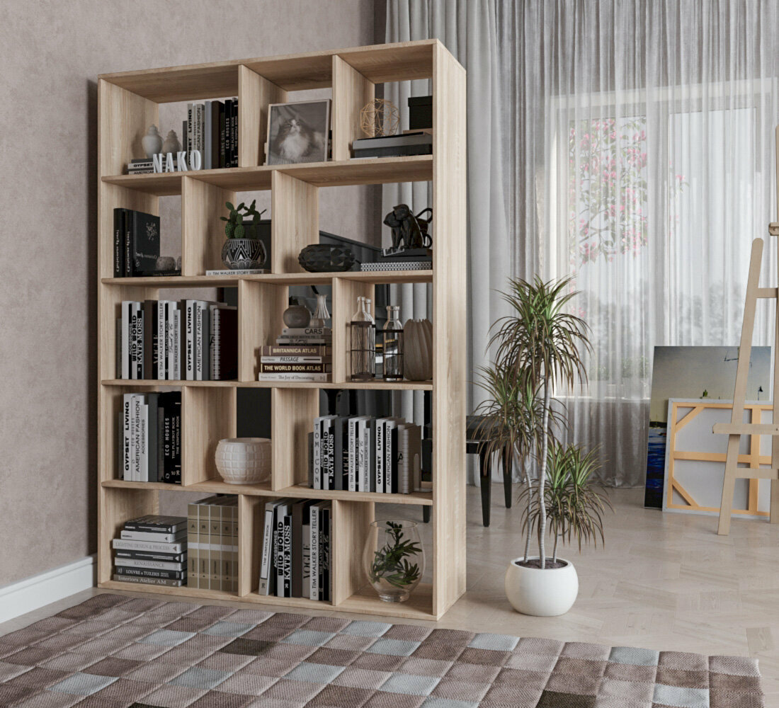 10 цен на Стеллаж Перегородка модель Рози 15 (ШхВхГ) 120х174,6х29см., цвет Дуб Сонома