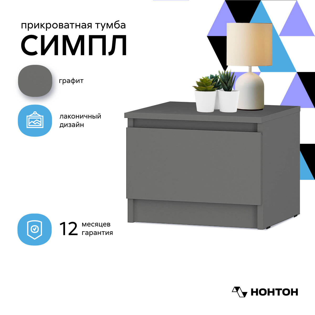Тумба прикроватная Нонтон Симпл графит 40.4x35.6x31 см информация: