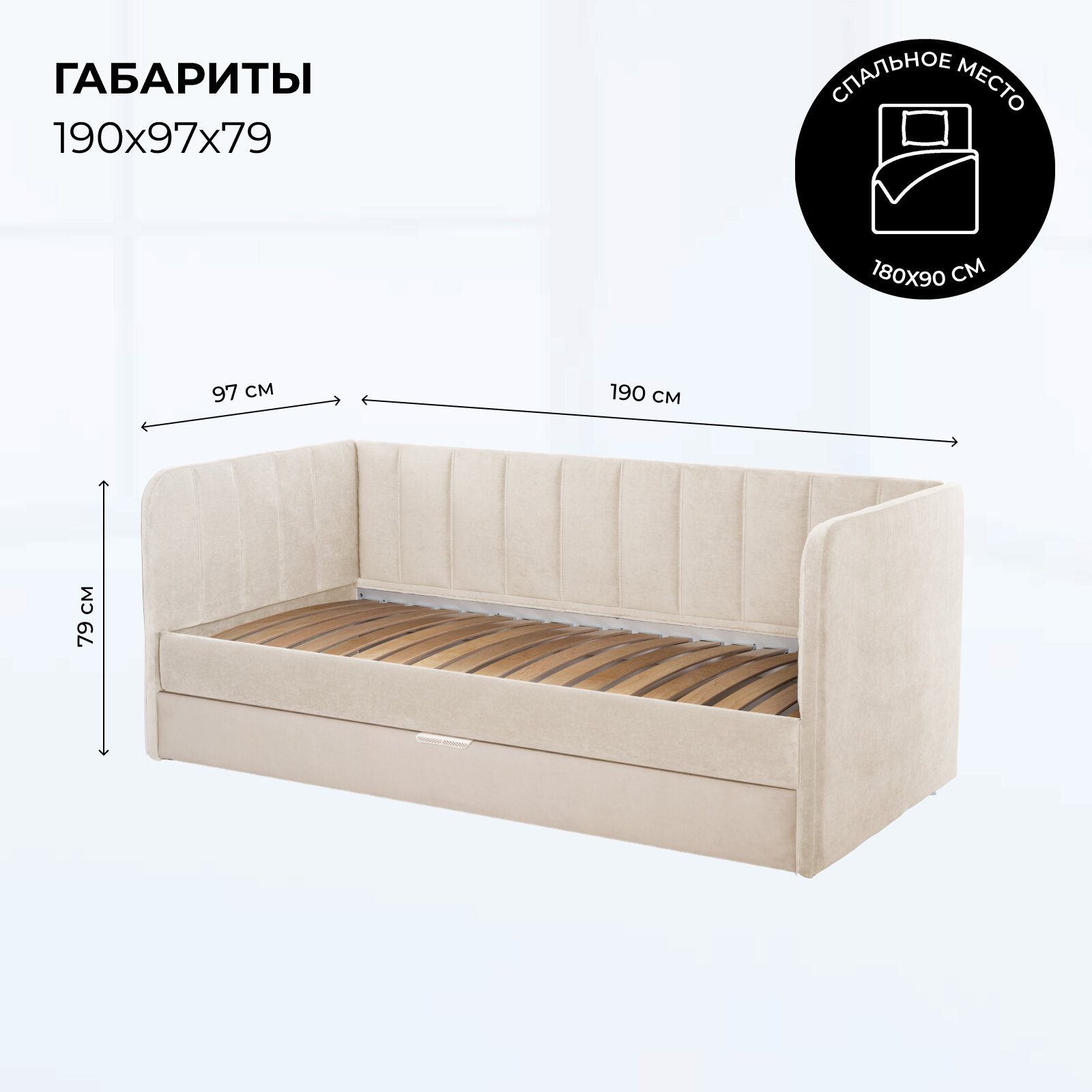 Futuka Kids Диван-кровать Crecker Newtone с ящиком для белья (дополнительным спальным местом) и бортиком-ограничителем, цвет бежевый, 180x90 см. 20 740 ₽