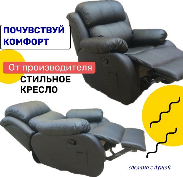 Кресло реклайнер механическое черное 160 градусов, экокожа информация: