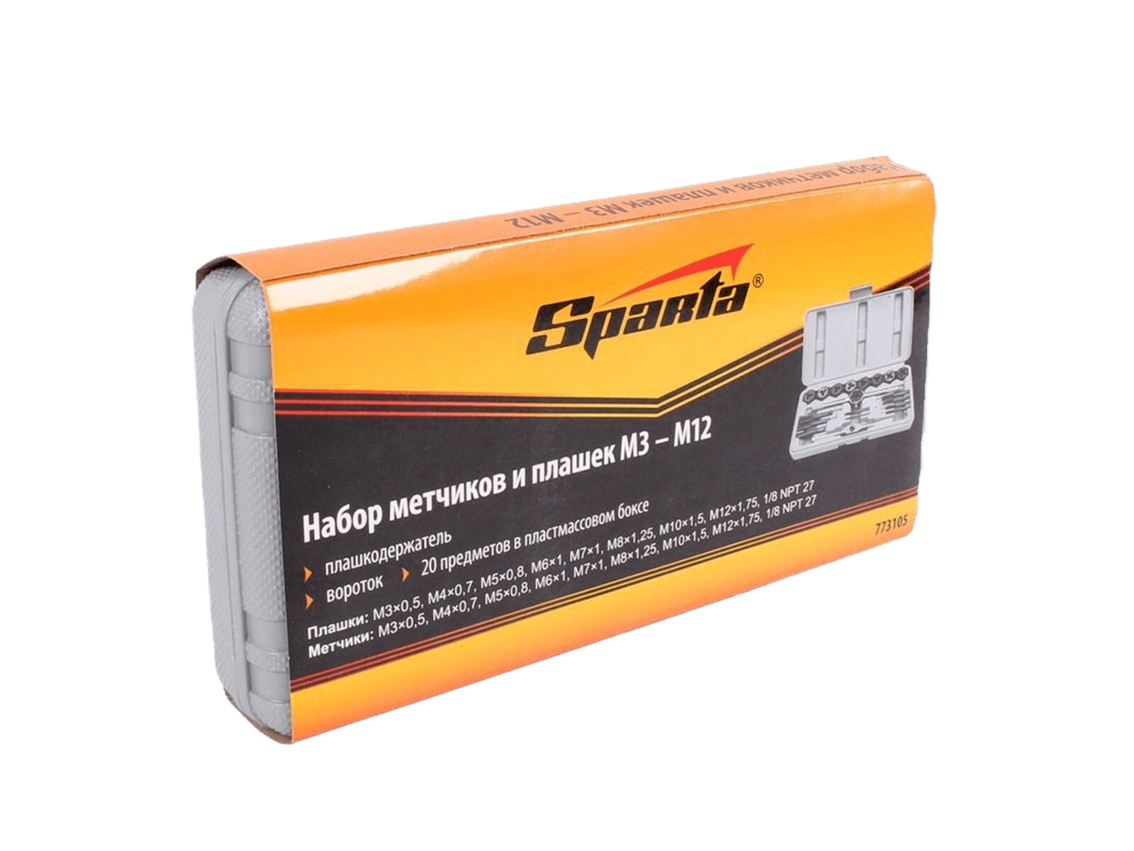 Набор метчиков и плашек Sparta М3 - М12 плашко-метчикодержатель, 20 предметов, в пласт. боксе 773105 информация: