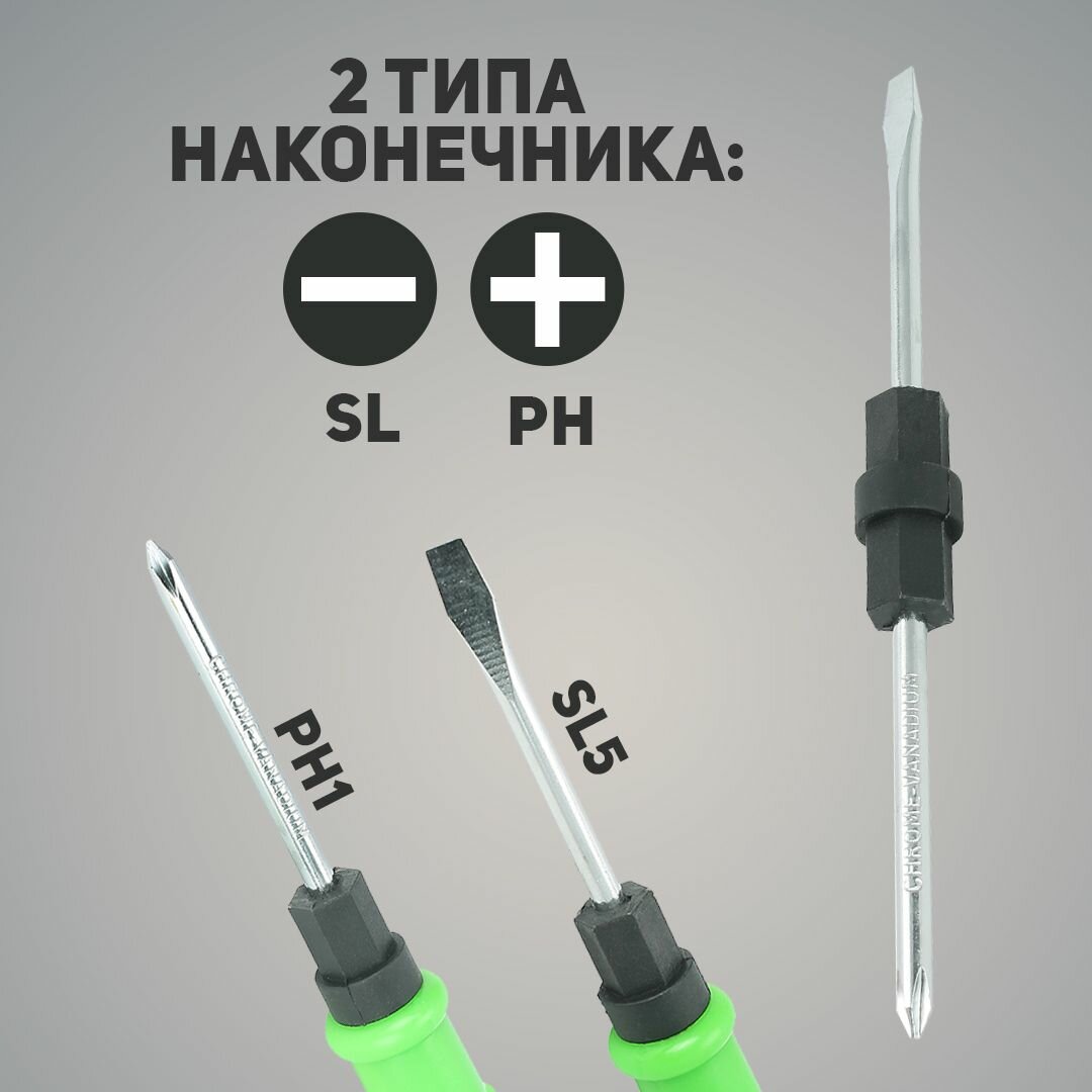 Отвертка Комбинированная | 65мм РН1-SL5 | набор двухсторонняя шлицевая плоская прямая крестовая крестообразная с насадками и набором бит