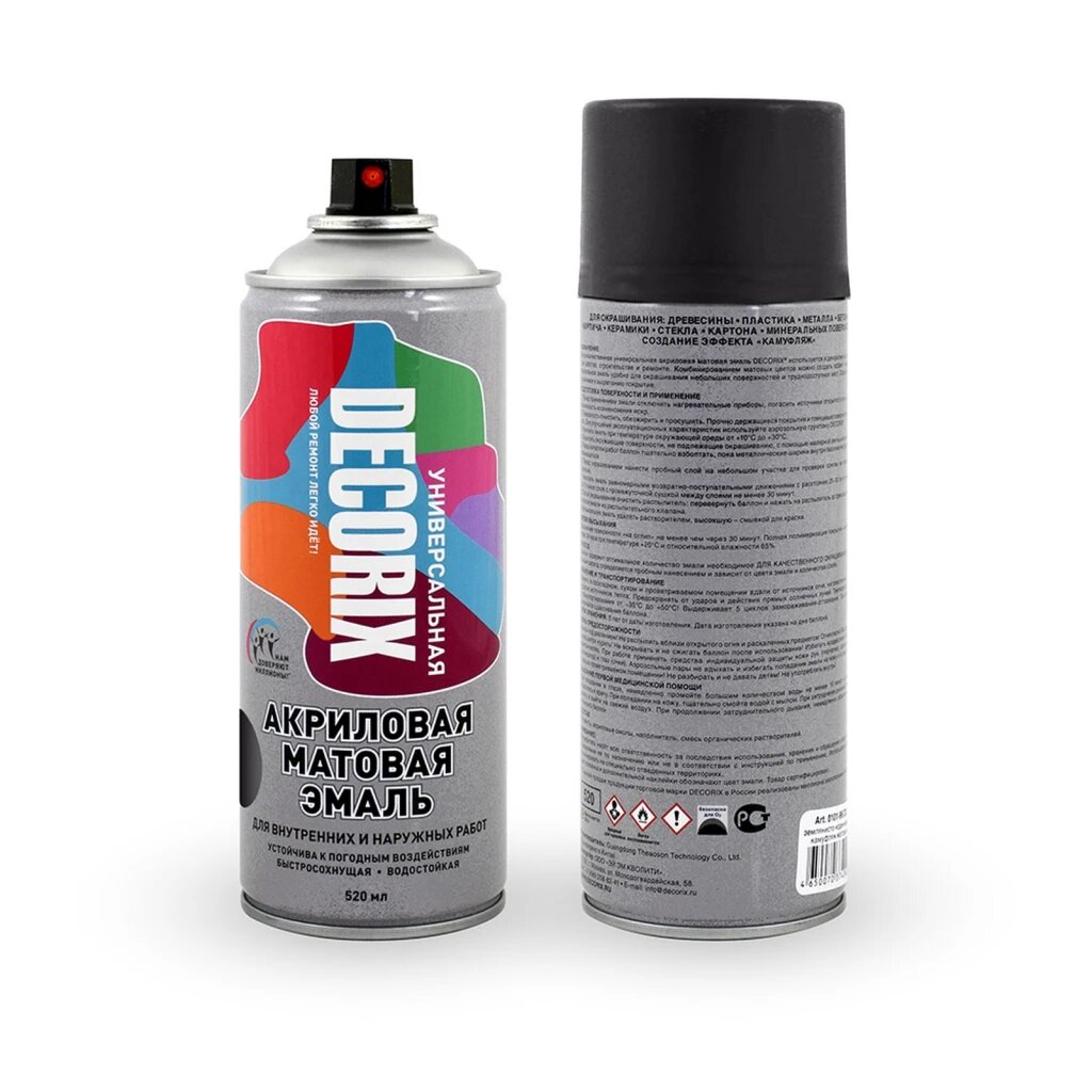 Эмаль аэрозольная универсальная DECORIX, 520, черн MobiCAR 010102DX информация: