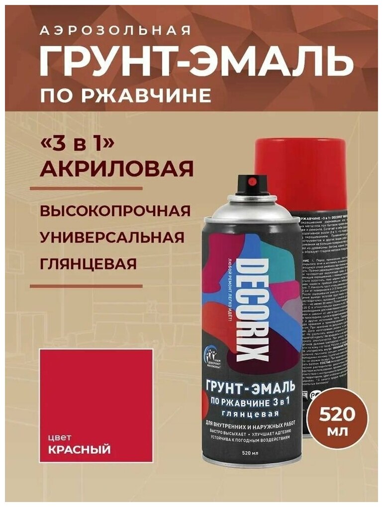 Отзывы на DECORIX 010604DX 0106-04 DX DECORIX Грунт-эмаь по ржавчине 3 в 1 красный гянцевый 520 м аэрозоь
