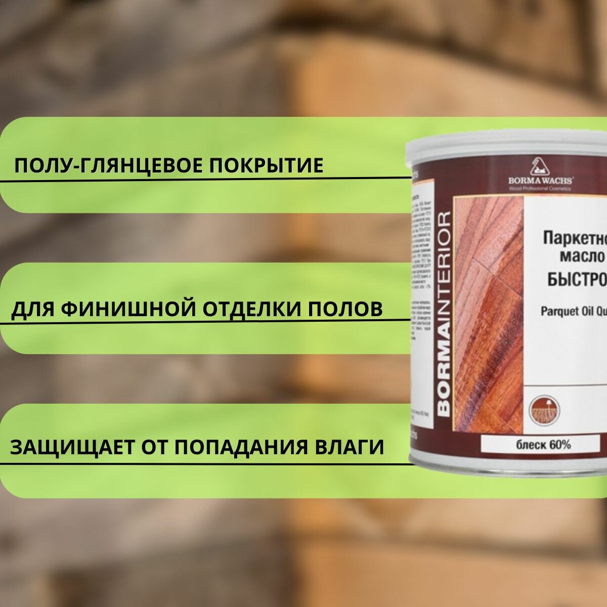 Масло для паркета блеск 60% BORMA PARQUET OIL 1л 4951-60 информация: