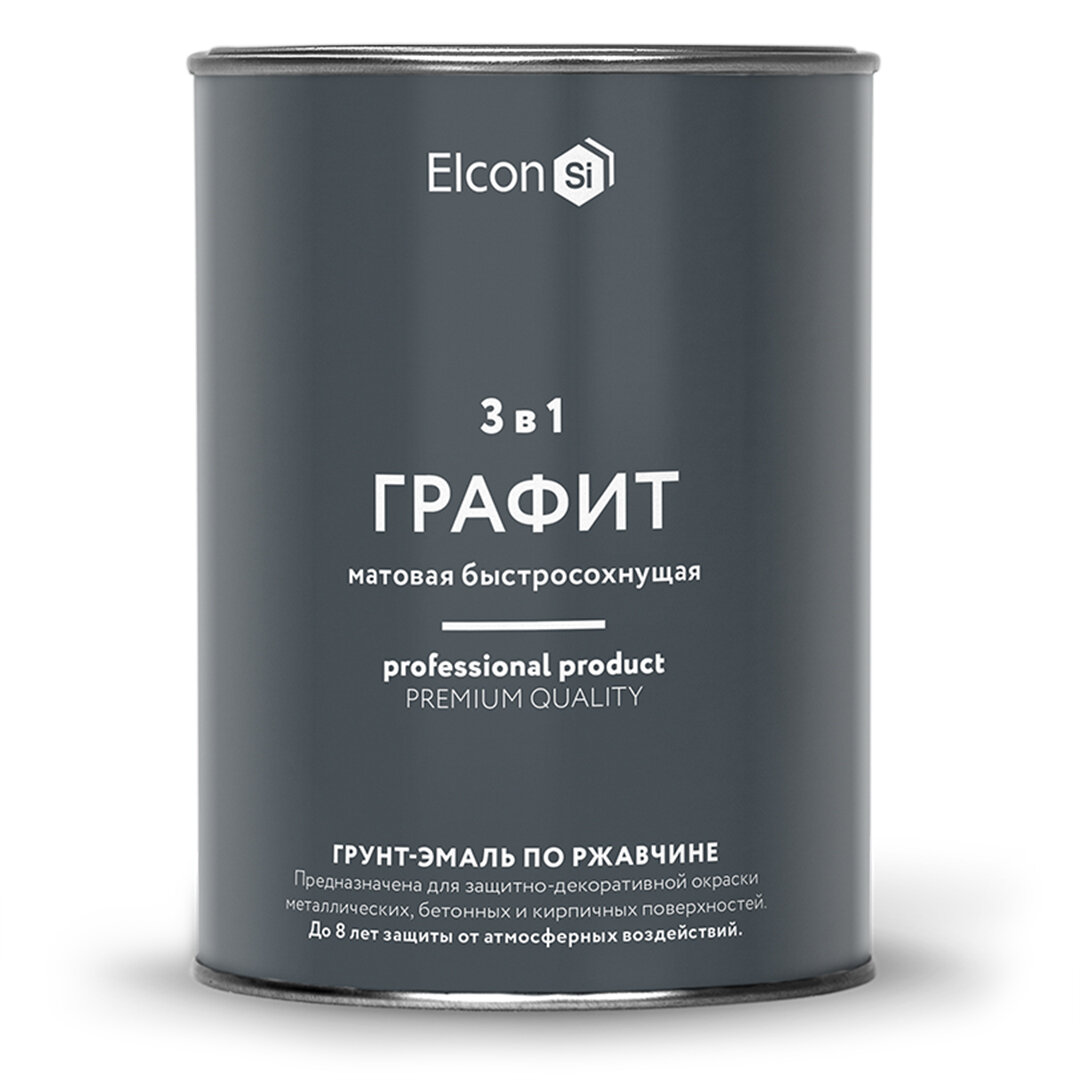 Краска по металлу и ржавчине, грунт-эмаль 3 в 1 Elcon матовая графит 0,8 кг информация: