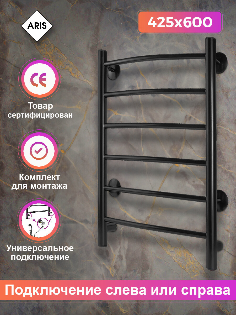 Aris Электрический полотенцесушитель ребро 400x600 черный 6 перекладин ПСК-10-52ч информация: