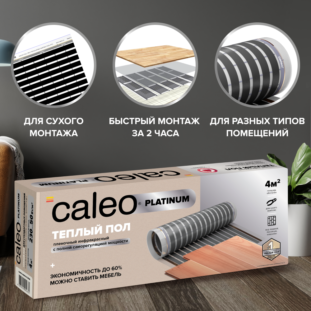 Теплый пол cаморегулируемый Caleo Platinum 50/230 Вт/м2, 4 м2 в комплекте с терморегулятором SM930