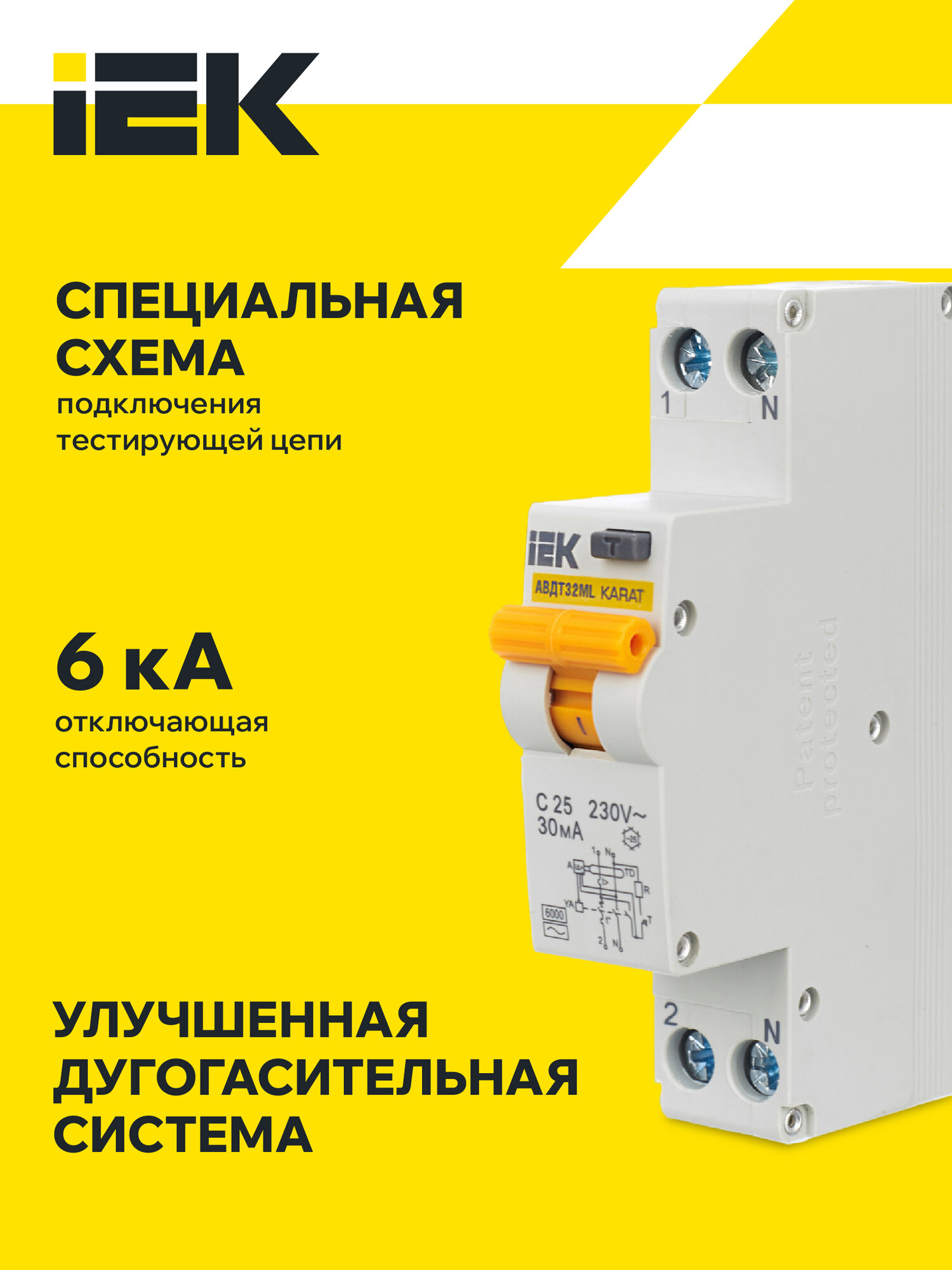 Выключатель автоматический дифференциального тока АВДТ32МL C25 30мА KARAT IEK информация: