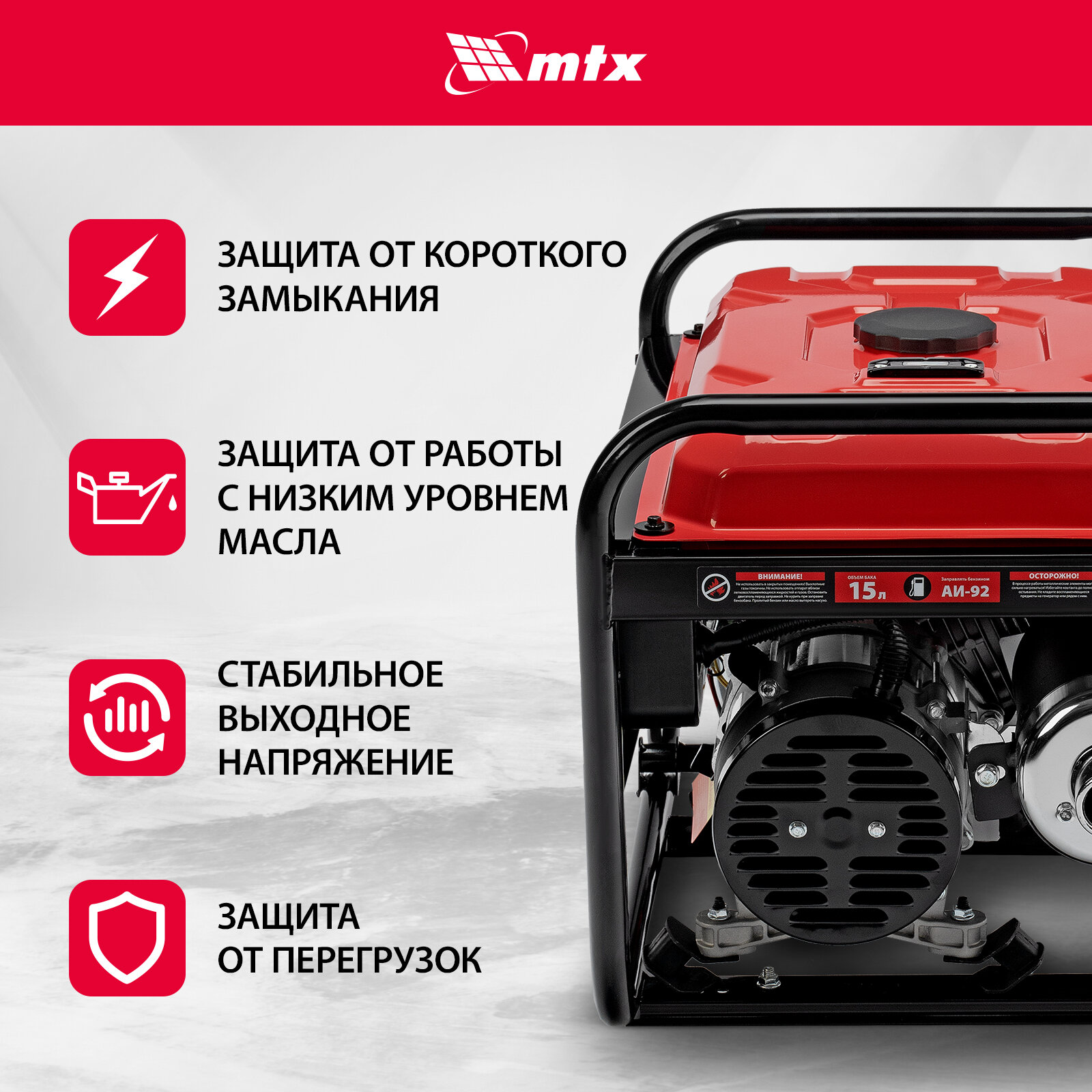 Генератор бензиновый MTX RS-4000E, 3,3 кВт, 230В, электростартер 946125 информация: