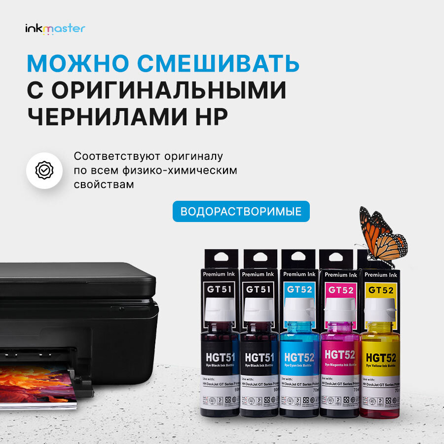 Чернила для HP GT51/GT52, краска для заправки принтера InkTank 115 315 319, Smart Tank 500 513 515, DeskJet GT 5810 и тд информация: