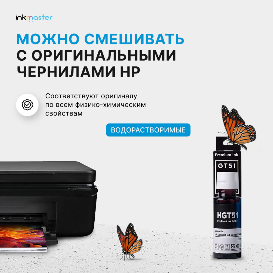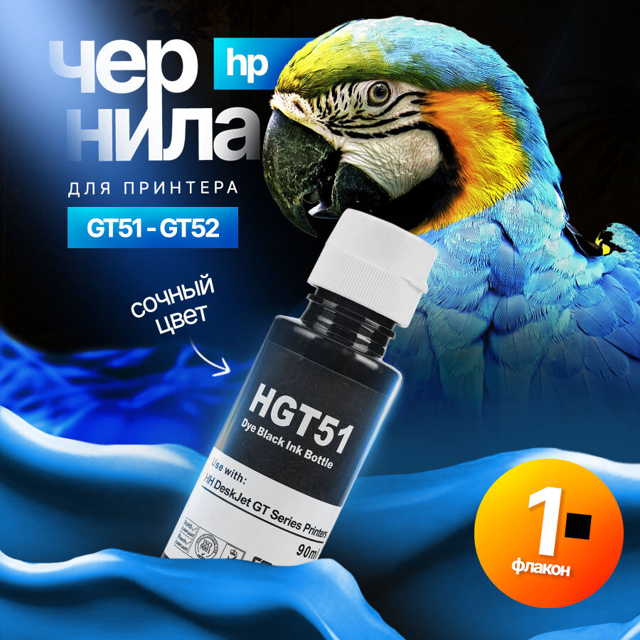 10 цен на Чернила GT51 Black для принтера HP DeskJet-GT5810, 5820, 5822/InkTank 110ser, 115, 310ser, 315, и тд, 90мл, совместимыe