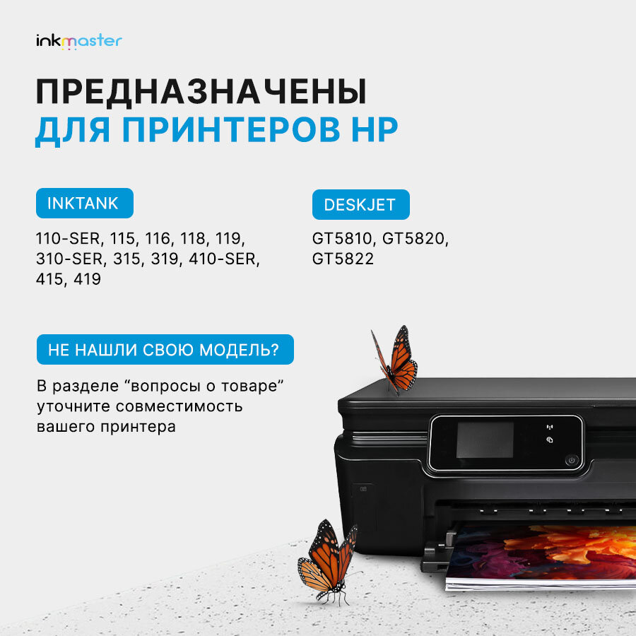 Чернила GT51 Black для принтера HP DeskJet-GT5810, 5820, 5822/InkTank 110ser, 115, 310ser, 315, и тд, 90мл, совместимыe информация: