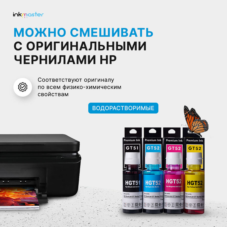 Чернила для HP GT51/GT52, краска для заправки принтера InkTank 115 315 319, Smart Tank 500 513 515, DeskJet GT 5810 и тд 1 045 ₽