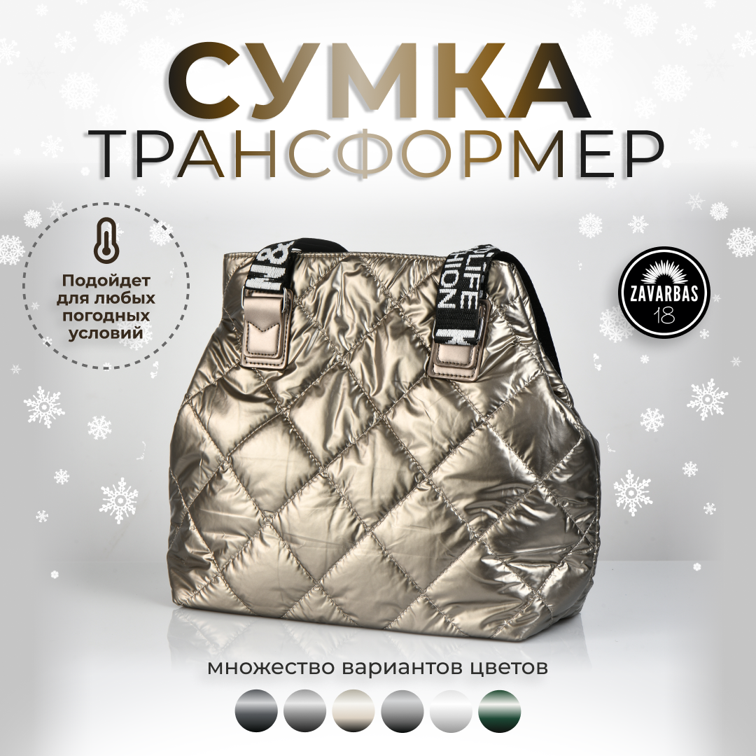 Сумка женская через плечо / Сумка кросс-боди / Зимняя сумка / Шоппер / Сумка на плечо / сумка большая стеганая дутая серый металлик 2 250 ₽