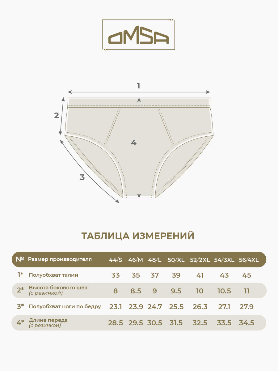 Трусы мужские OMSA OmB 1223 Слипы с закрытой резинкой, COTTON Grigio Scuro/Militari/Jeans 56(4XL) комплект 3шт 1 399 ₽