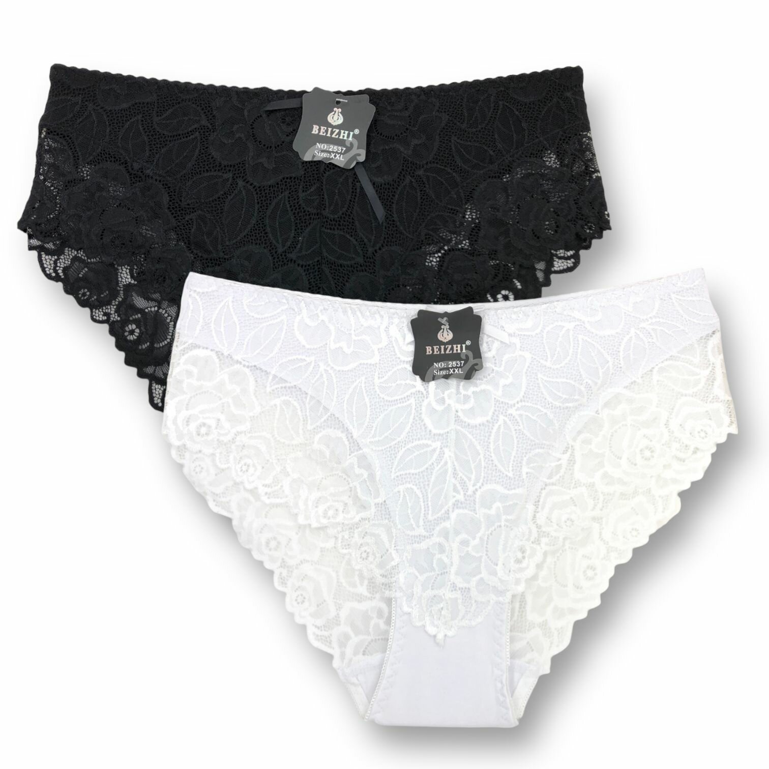 Трусы женские "Beizhi" N.2537, 2XL, Черный, Белый , 2 шт. информация: