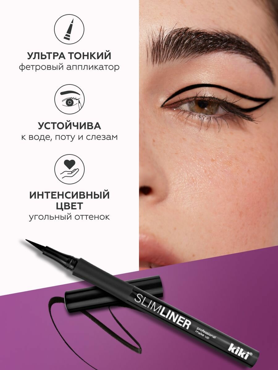 10 цен на Подводка-фломастер для глаз kiki SLIMLINER, ультратонкий аппликатор, четкий контур, стойкая, угольно-черная
