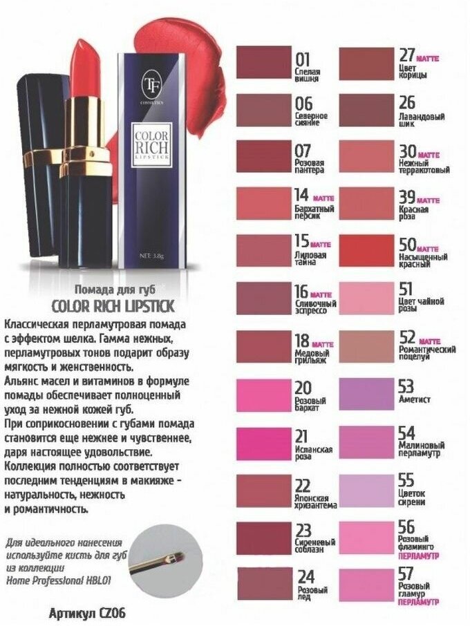 TF Cosmetics помада для губ Color Rich, оттенок 55 информация: