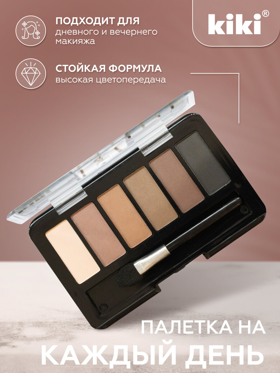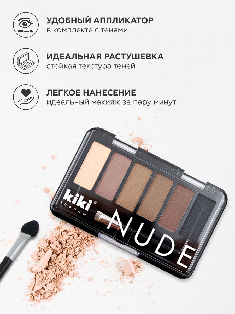 Тени для век kiki shadow NUDE, тон 905 натуральный шик, 6 оттенков, палетка с кистью для растушевки, стойкие, матовые, нюдовые, перламутр 283 ₽