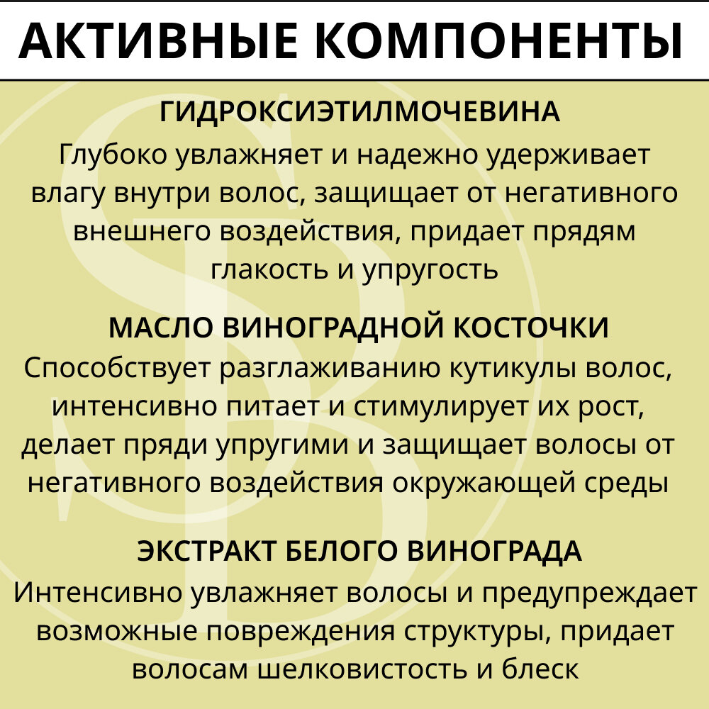 | Эффект | восстановление / защита цвета / облегчение расчесывания / питание / придание блеска / увлажнение / устранение желтизны |