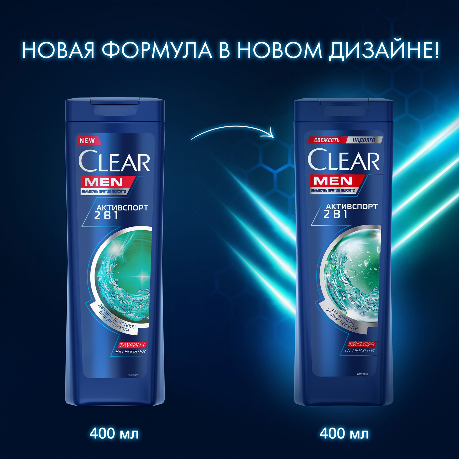 Clear шампунь 2 в 1 против перхоти Активспорт, 400 мл