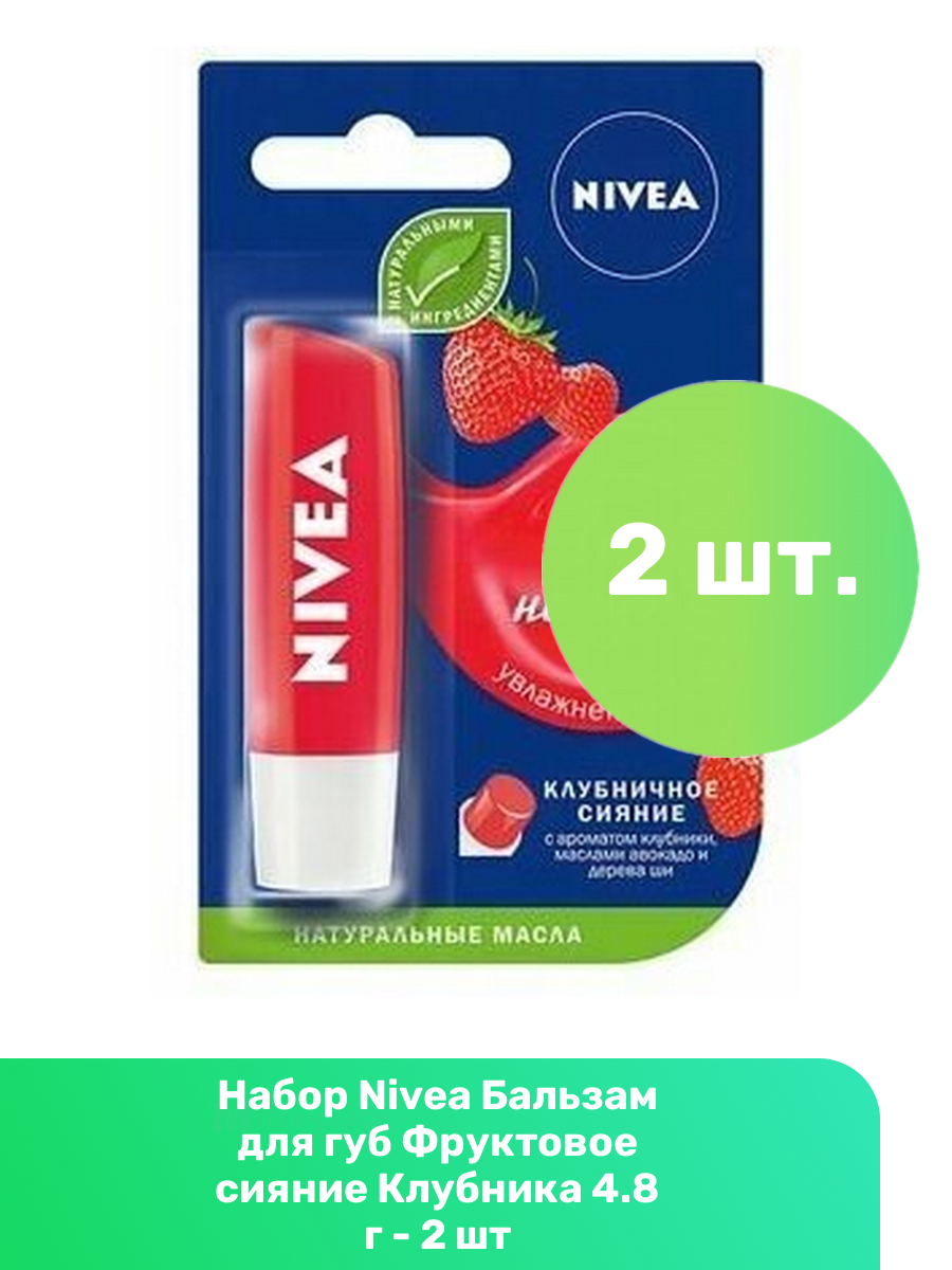 10 цен на Nivea Бальзам для губ Фруктовое сияние Клубника 4.8 г - 2 шт