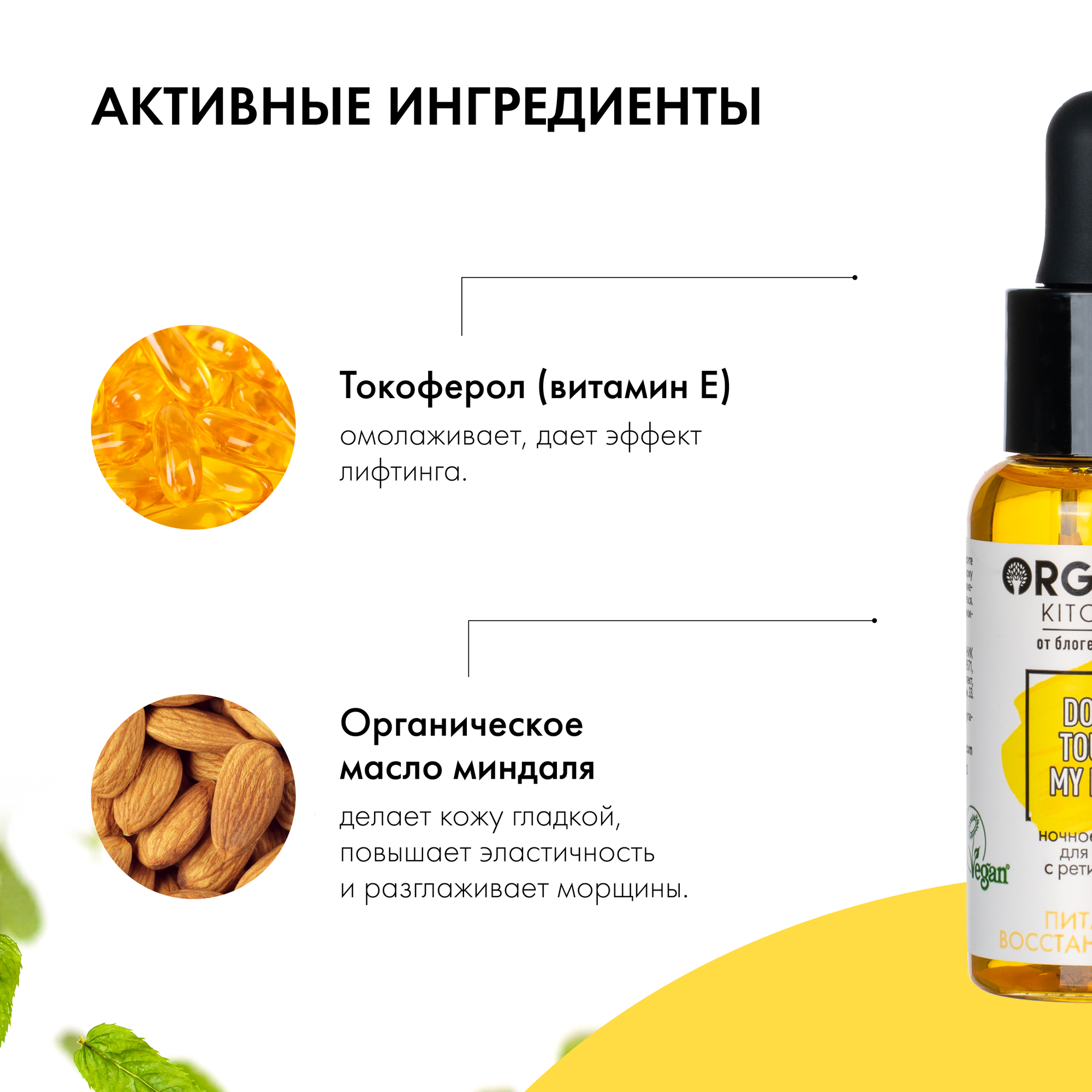 Масло для лица Organic Kitchen Блогеры Адель от морщин ночное с ретинолом омолаживающее увлажняющее, массажное 30 мл информация: