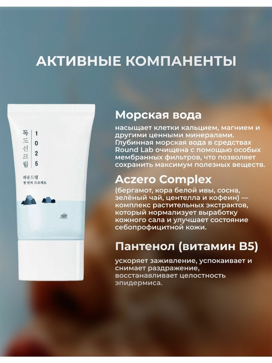Round Lab Солнцезащитный крем для лица на химических фильтрах нового поколения, для проблемной кожи, с морской водой, SPF 50+ 1025 Dokdo Sunscreen, 50 мл информация: