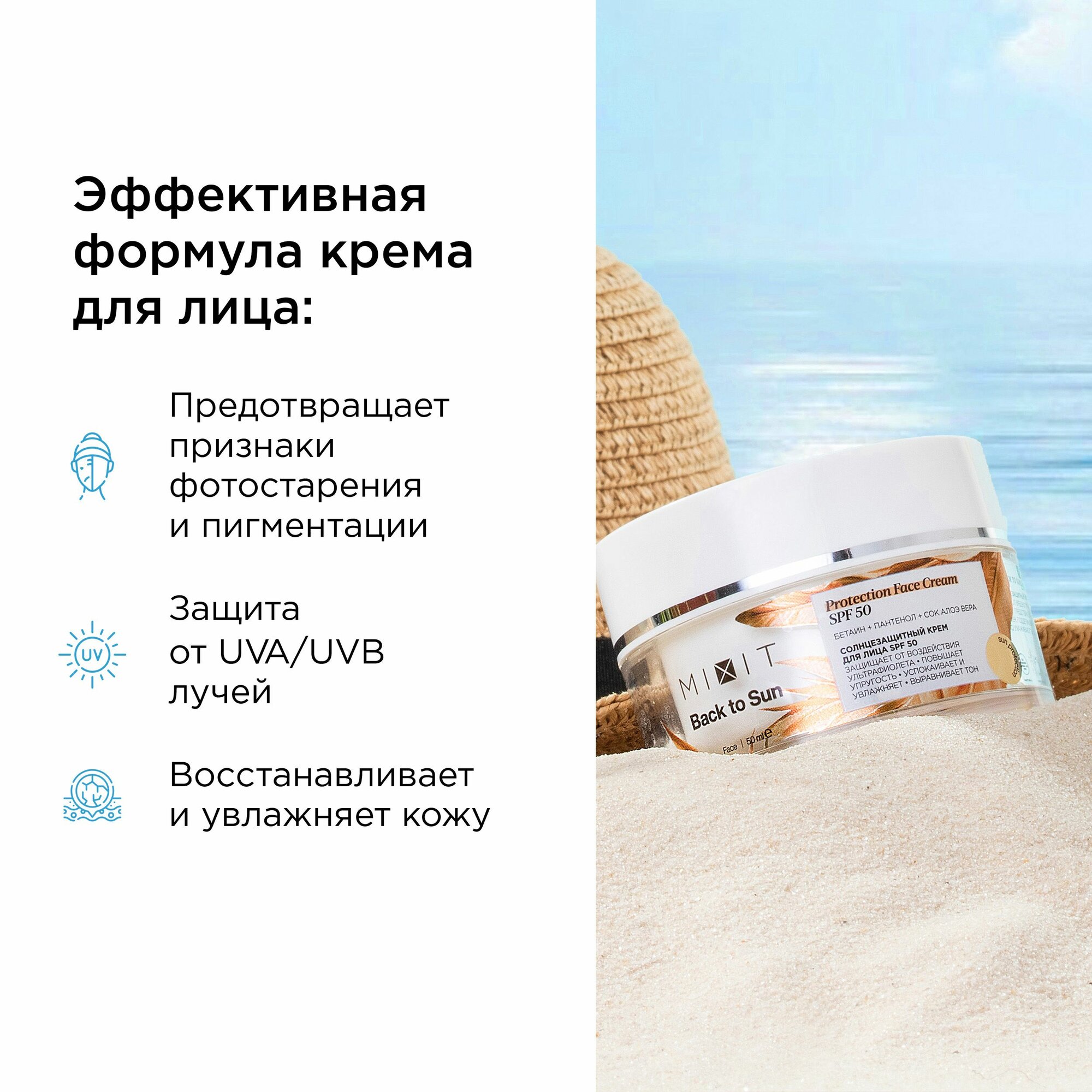 Солнцезащитный крем для лица MIXIT Back to Sun Protection Face Cream SPF 50 50 мл информация: