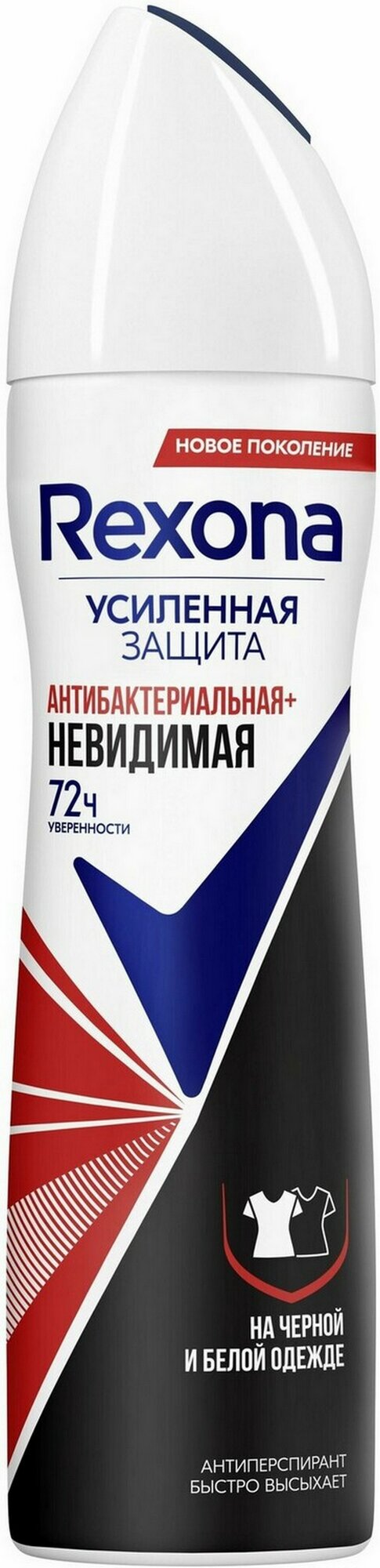 Rexona антиперспирант-дезодорант спрей Антибактериальная и невидимая на черной и белой одежде 150 мл