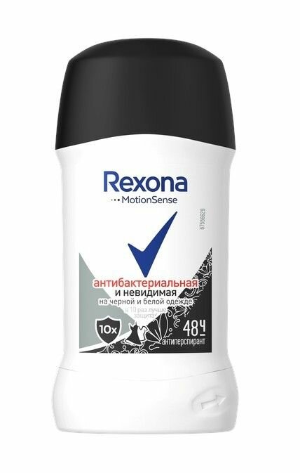 Rexona Дезодорант стик женский Антибак Невидимый на черном и белом 40 мл, 2 шт информация: