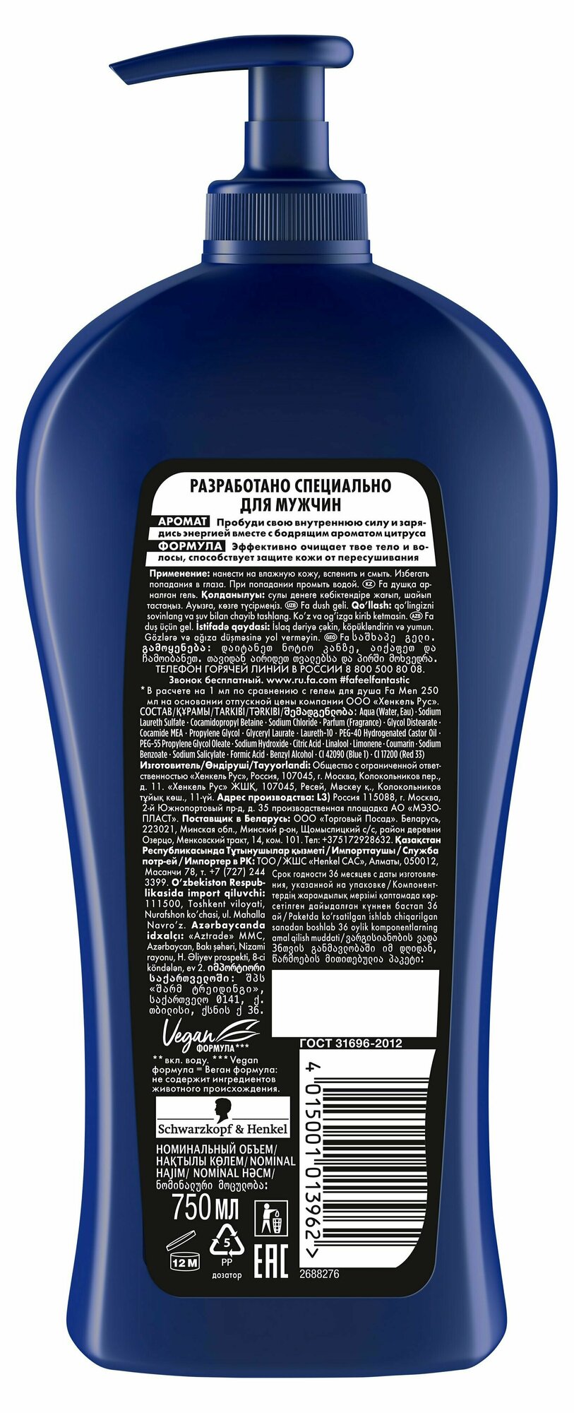 Гель для душа «Фа» Men Спорт, 750 мл информация: