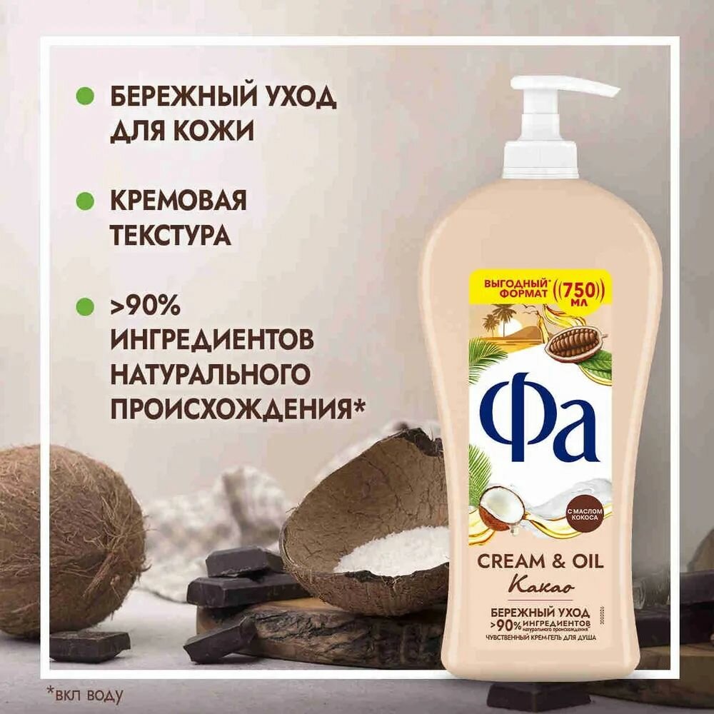 Фа Крем-гель для душа женский Cream & Oil Какао, 750 мл 2 шт 1 202 ₽