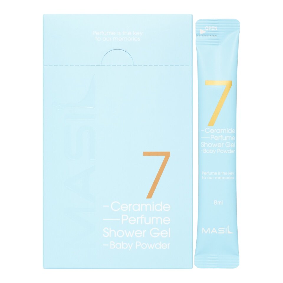 10 цен на MASIL 7 CERAMIDE PERFUME SHOWER GEL STICK POUCH (BABY POWDER) Парфюмированный гель для душа с керамидами и ароматом детской присыпки 20*8мл
