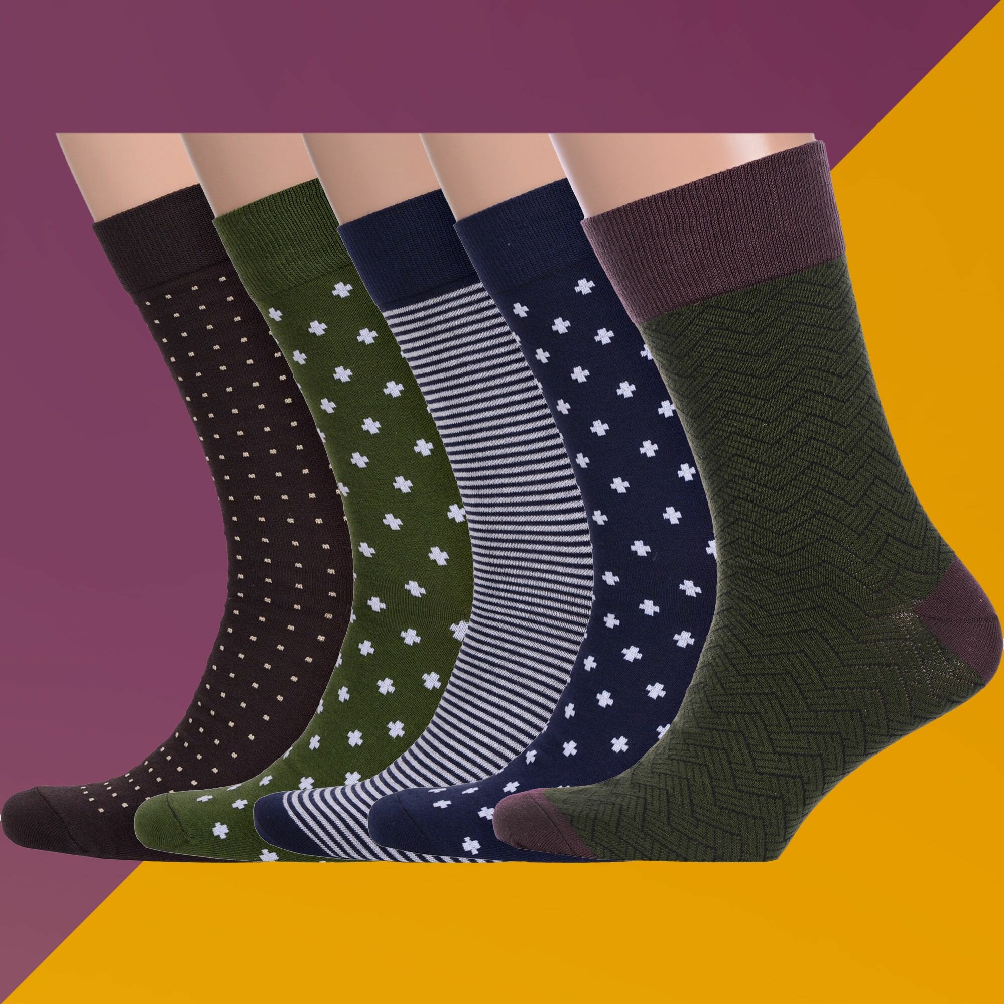 10 цен на 5-1МБ19-11 Набор из 5 пар мужских носков Flappers Peppers зеленые темно-синие коричневые полоска крестик принт рисунок высокие средние длинные хлопок хб хлопковые флэпперс пепперс комплект упаковка