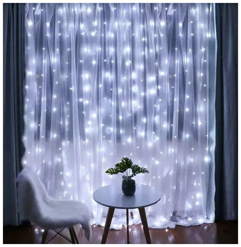 10 цен на Гирлянда светодиодная Занавес/Штора/на окно / Новогодняя гирлянда дождик 2 на 2 метра Белая