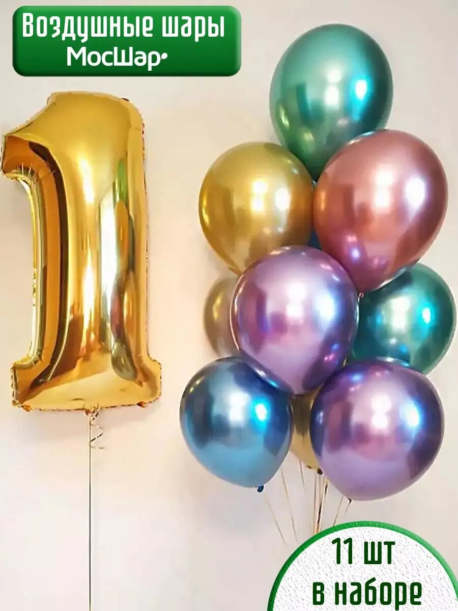 Набор воздушных шаров МосШар, цифра 1, хром, 11 штук