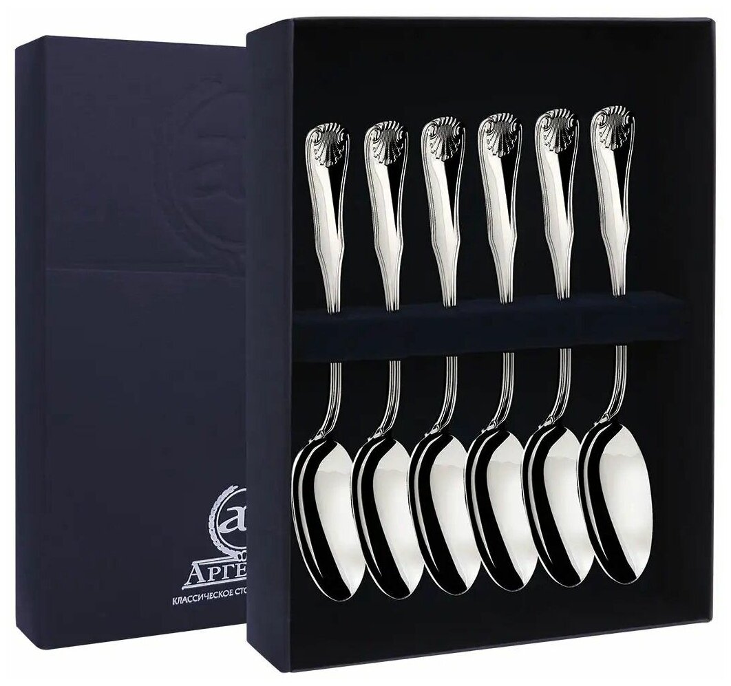 Набор серебряных чайных ложек "Визит" (6 предметов) в футляре информация: